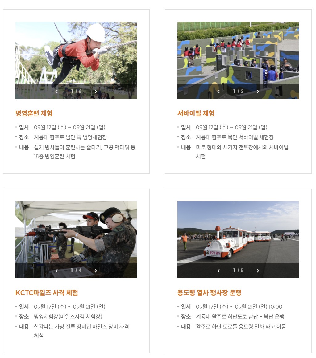 ๊ตฐ๊ณผ ์๋ฏผ์ด ํจ๊ป ์ฆ๊ธฐ๋ ์ด ํน๋ณํ ์ถ์ ๋ ๊ตฐ๋ฌธํ์ ํ๋์ ์ธ ์ฒดํ ์์๊ฐ ๊ฒฐํฉ๋ ๋ํ๋ฏผ๊ตญ ๋ํ ๊ตฐ๋ฌธํ ์ถ์ ๋ก ์๋ฆฌ์ก์์ด์.