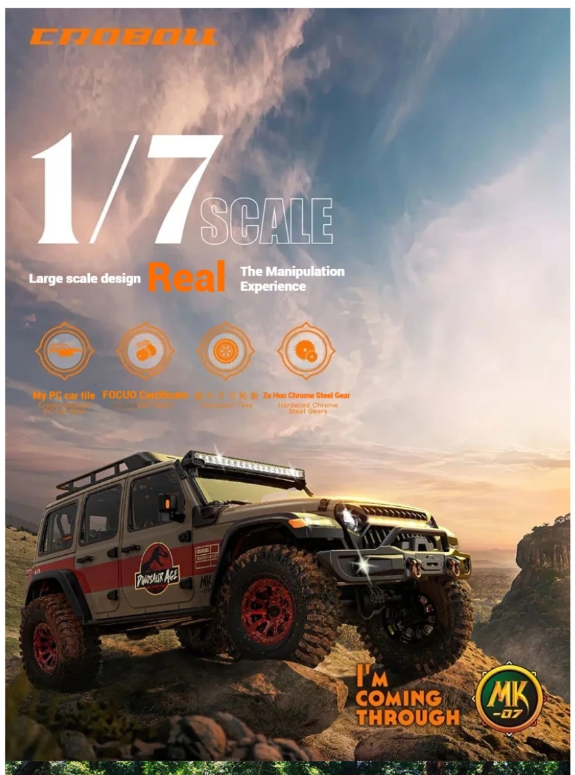크로볼 Mk07 대형 오프로드 RC카 1/7 스케일 무선 조종 전동 등반 차량 (디퍼렌셜 락, 듀얼 속도 기능 포함)