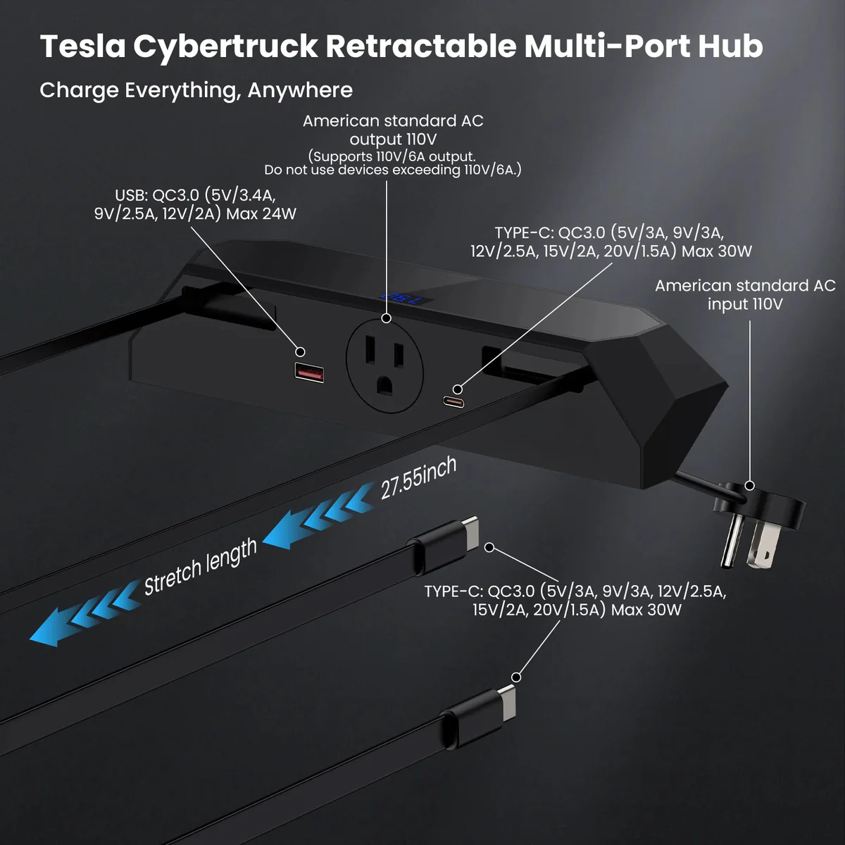 Center Console 110V/USB Charger Hub Outlet With 110V(AC)/5V For Tesla Cybertruck