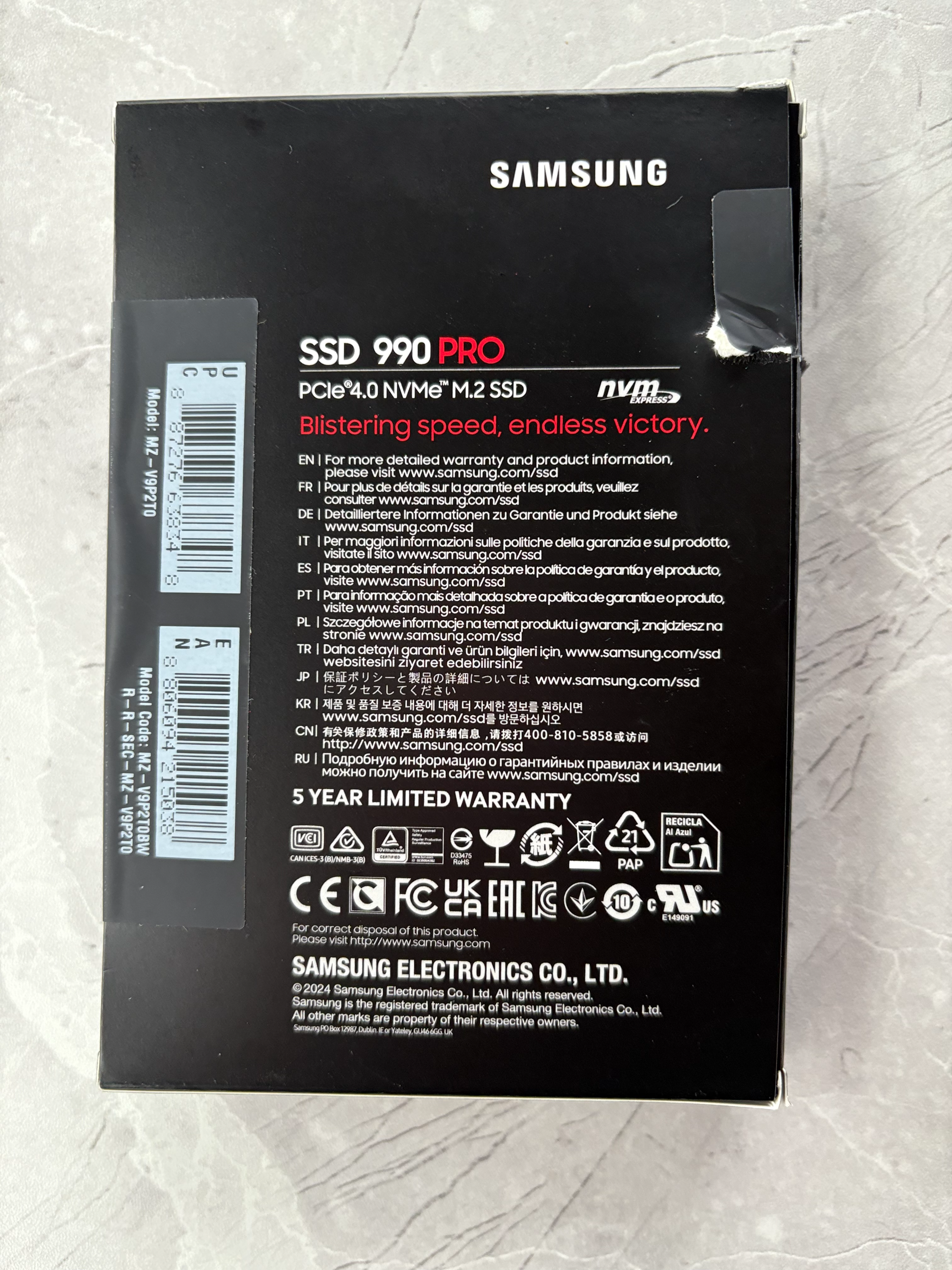 이대로는 안 되겠다 싶어서 결국 외장 SSD 업그레이드를 결심했고, 수많은 제품들을 비교한 끝에 최종적으로 선택한 SSD는 바로 삼성 990 PRO 2TB입니다.