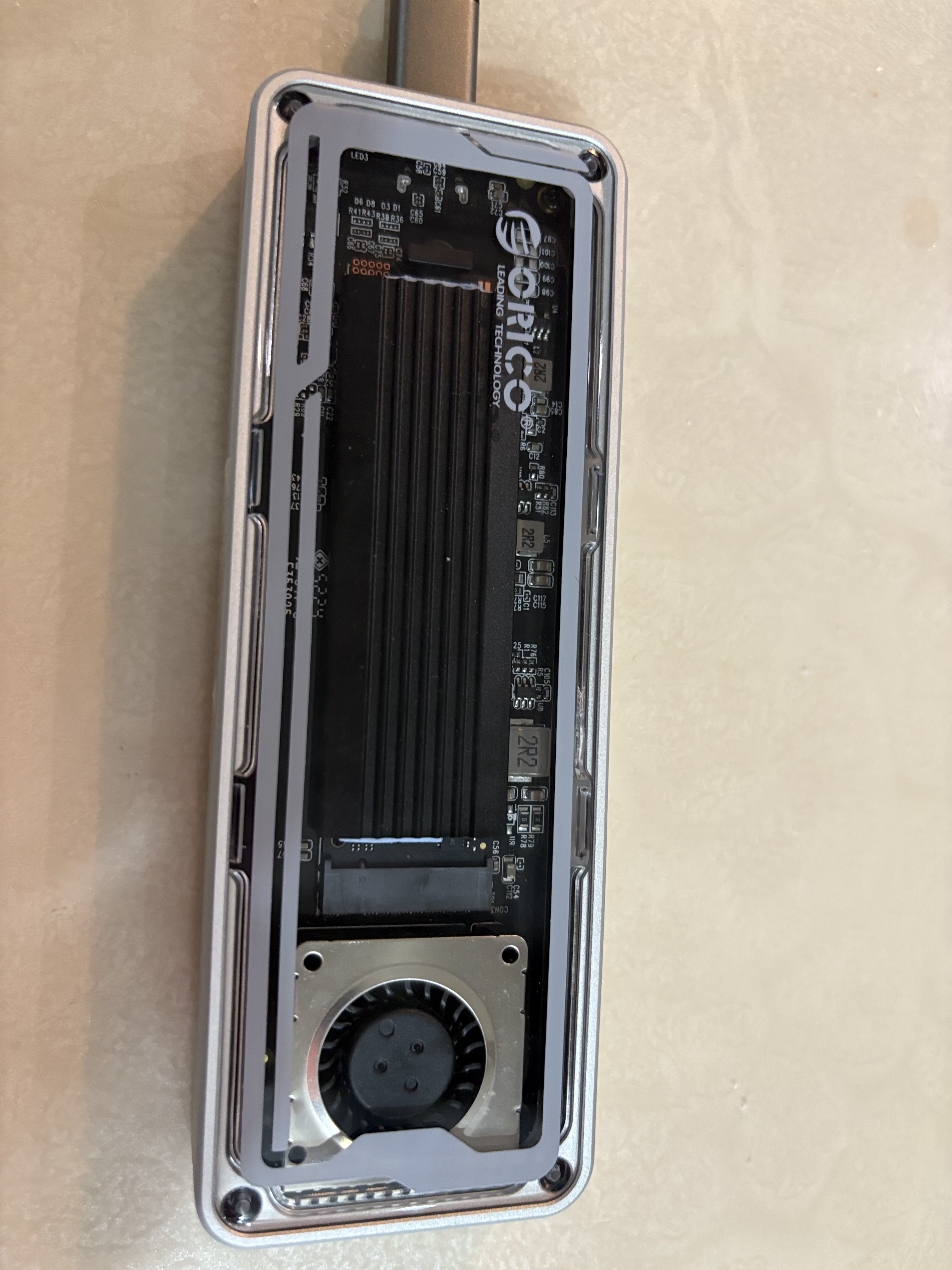 제가 사용 중인 맥북은 NVMe SSD를 직접 장착할 수 없기 때문에, **외장 SSD 케이스(Enclosure)**를 별도로 구입해서 USB-C (Thunderbolt 3)로 연결했어요.