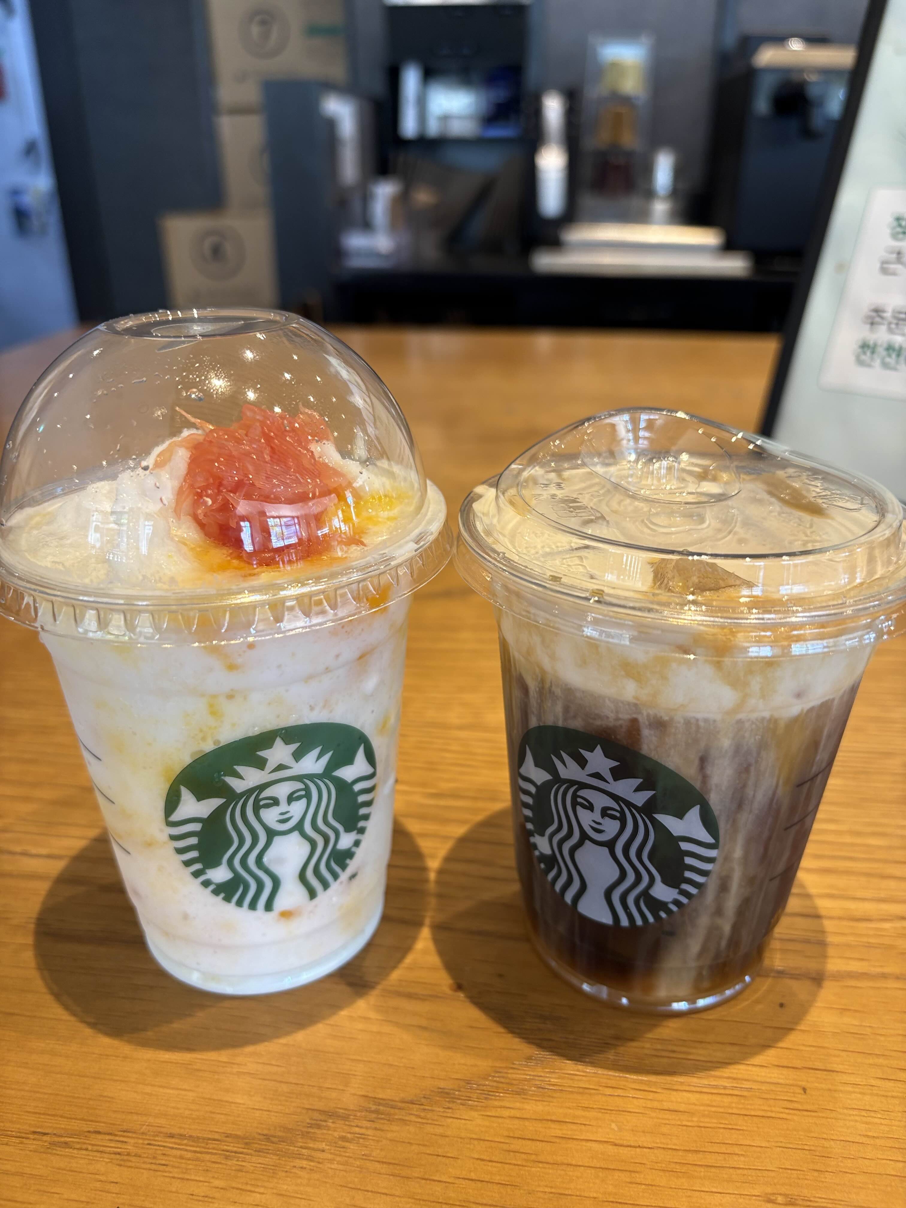 자몽 망고 코코 프라푸치노 & 시솔트 카라멜 콜드브루 구입 완료!